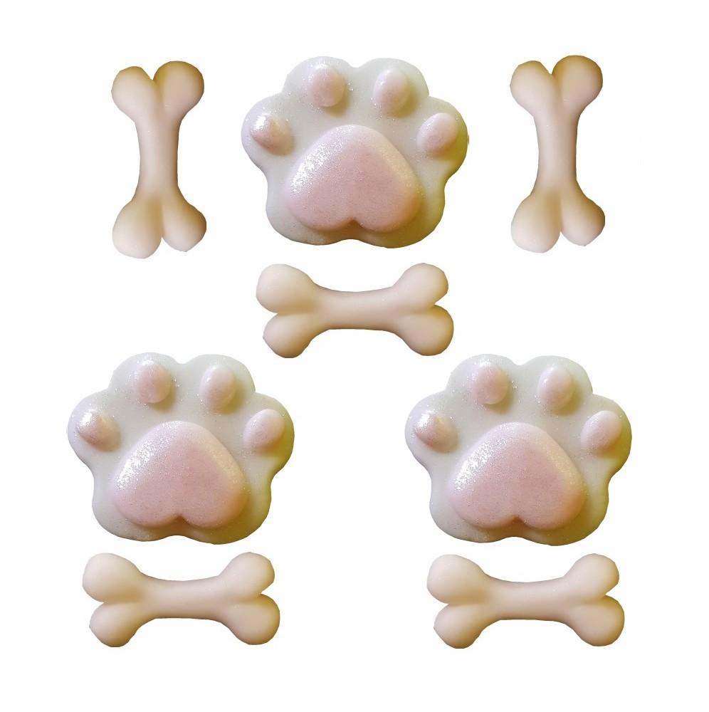 Fantastyczny zestaw dekoracji cukrowych w postaci łapek oraz kostek pieska.