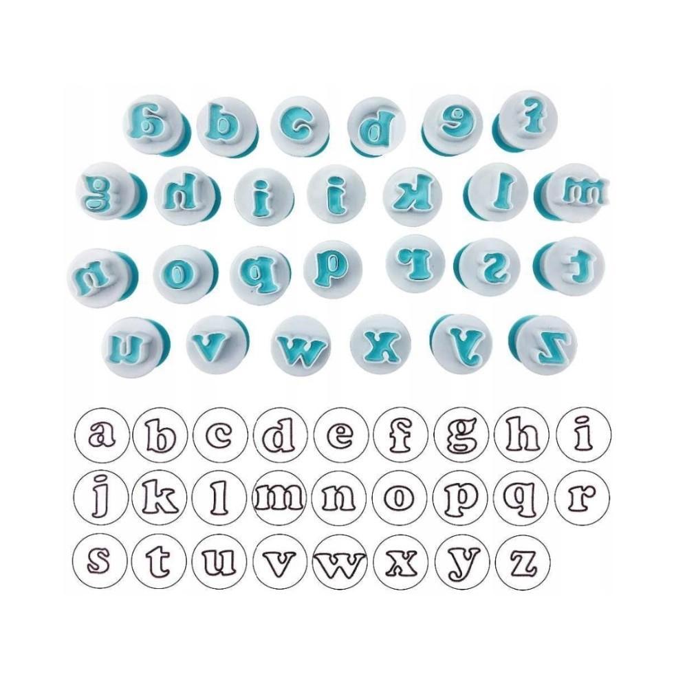 Zestaw wykrawaczy do masy cukrowej małe litery, zawiera litery alfabetu od A do Z (bez polskich znaków)