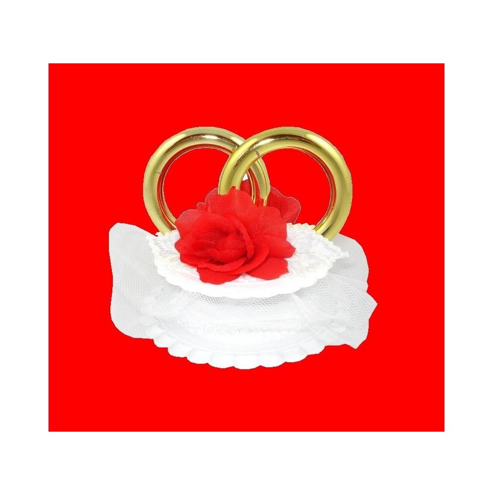 Obrączki ślubne koloru czerwonego to nietuzinkowa dekoracja który w wyjątkowy sposób udekoruje Wasz tort weselny. Ozdoba została wykonana z najlepszego jakościowo tworzywa sztucznego i może pozostać jako pamiątka dla Młodej Pary.