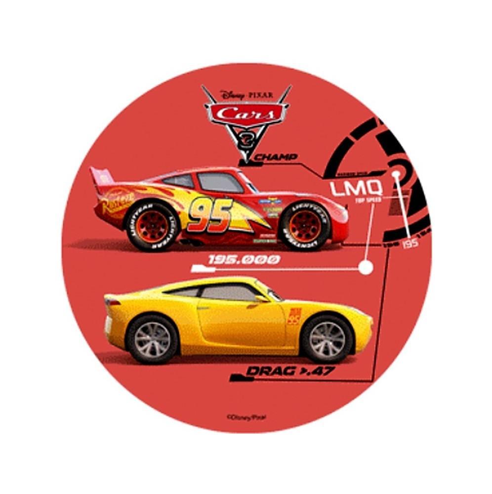 Jadalny okrągły opłatek na tort z wafla z motywem Carsów. Nadruk na opłatku został wykonany za pomocą jadalnych atestowanych tuszy spożywczych. Wydruk został wykonany specjalistyczną drukarką. Kolorystyka opłatka może nieznacznie się różnić od projektu graficznego (kolor opłatka jest intensywniejszy po nałożeniu na masę).
