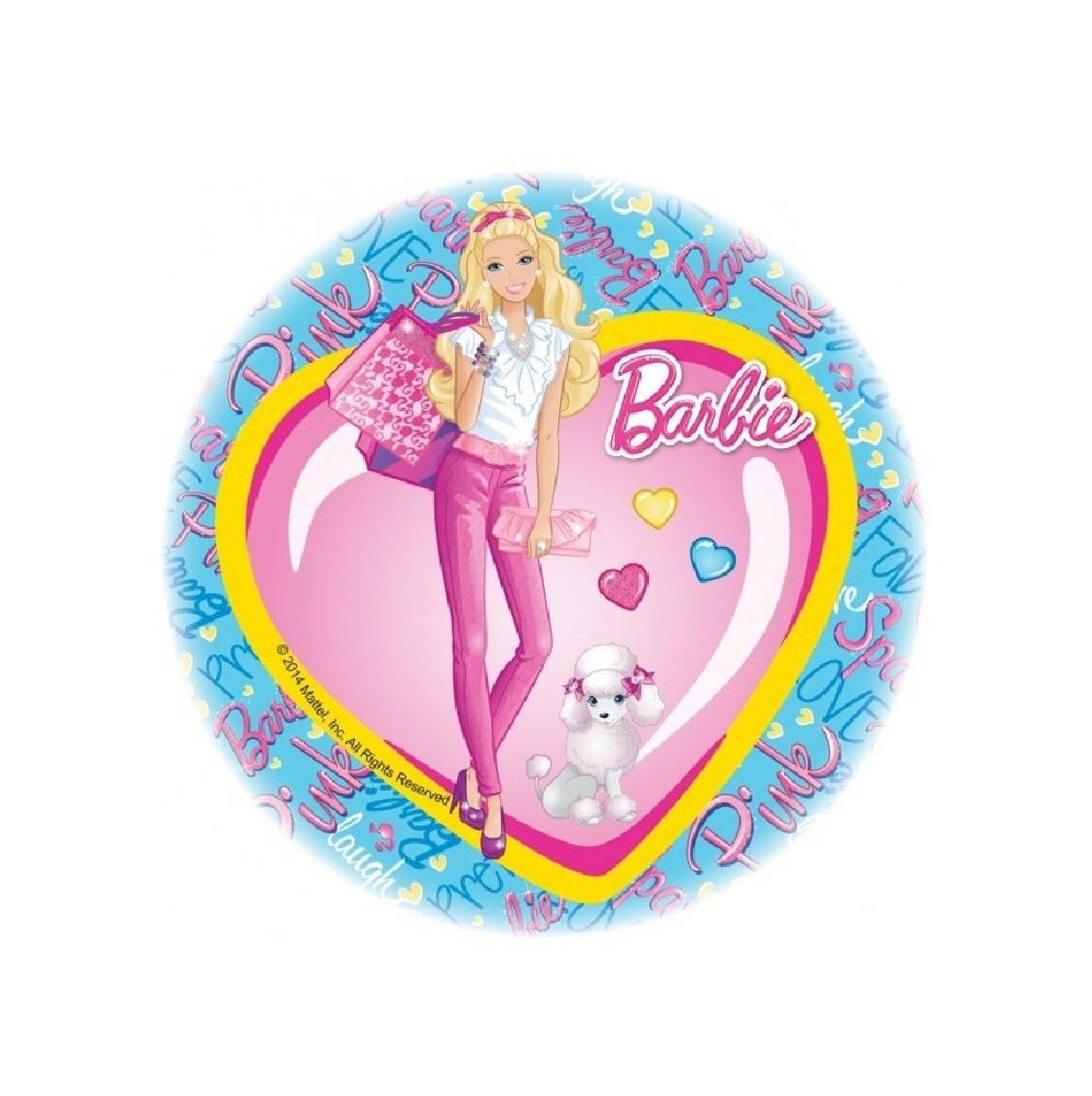 Jadalny okrągły opłatek na tort z wafla z motywem Barbie. Nadruk na opłatku został wykonany za pomocą jadalnych atestowanych tuszy spożywczych. Wydruk został wykonany specjalistyczną drukarką. Kolorystyka opłatka może nieznacznie się różnić od projektu graficznego (kolor opłatka jest intensywniejszy po nałożeniu na masę).