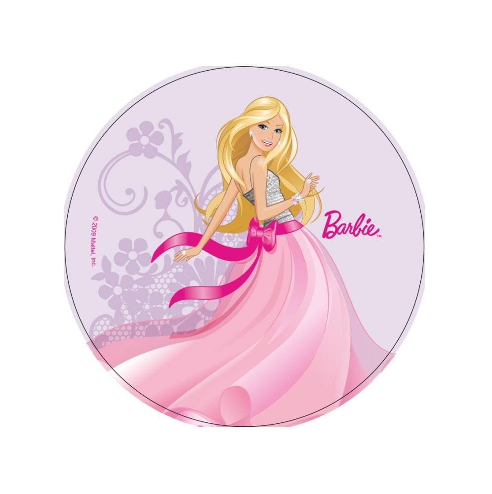 Jadalny okrągły opłatek na tort z wafla z motywem Barbie. Nadruk na opłatku został wykonany za pomocą jadalnych atestowanych tuszy spożywczych. Wydruk został wykonany specjalistyczną drukarką. Kolorystyka opłatka może nieznacznie się różnić od projektu graficznego (kolor opłatka jest intensywniejszy po nałożeniu na masę).