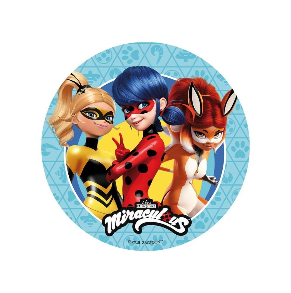 Jadalny okrągły opłatek na tort z wafla z motywem Biedronki i Czarnego Kota.