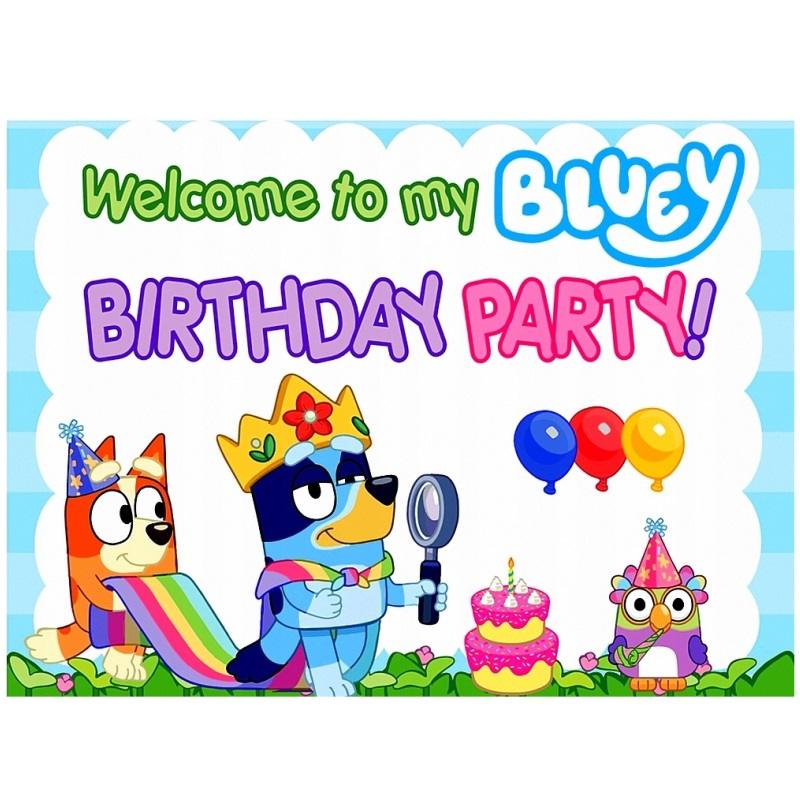 Prostokątny opłatek na tort z wafla z motywem Bluey, o wymiarach 29 x 20 cm, to idealna dekoracja dla miłośników tej uroczej postaci. Możliwość personalizacji tekstu dodaje wyjątkowego charakteru, czyniąc tort niepowtarzalnym i dostosowanym do okazji.