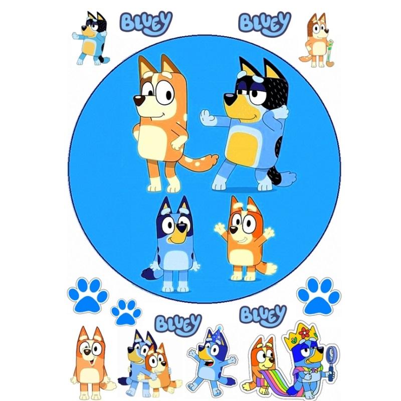 Gruby jadalny okrągły opłatek na tort z wafla z motywem Bluey.