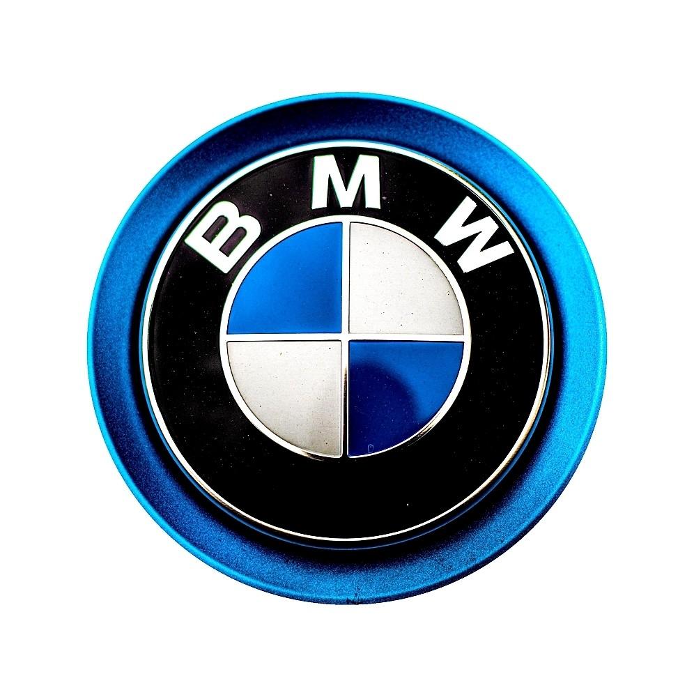 Gruby jadalny okrągły opłatek na tort z wafla z motywem logo BMW.