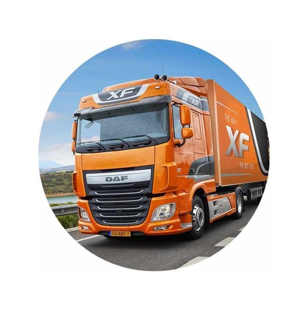 Jadalny okrągły opłatek na tort z wafla z motywem Ciężarówki. Nadruk na opłatku został wykonany za pomocą jadalnych atestowanych tuszy spożywczych. Wydruk został wykonany specjalistyczną drukarką. Kolorystyka opłatka może nieznacznie się różnić od projektu graficznego (kolor opłatka jest intensywniejszy po nałożeniu na masę).