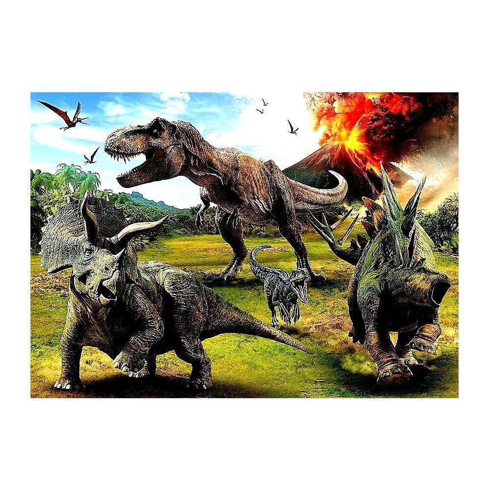 Gruby jadalny prostokątny opłatek na tort z wafla z motywem Dinozaurów.