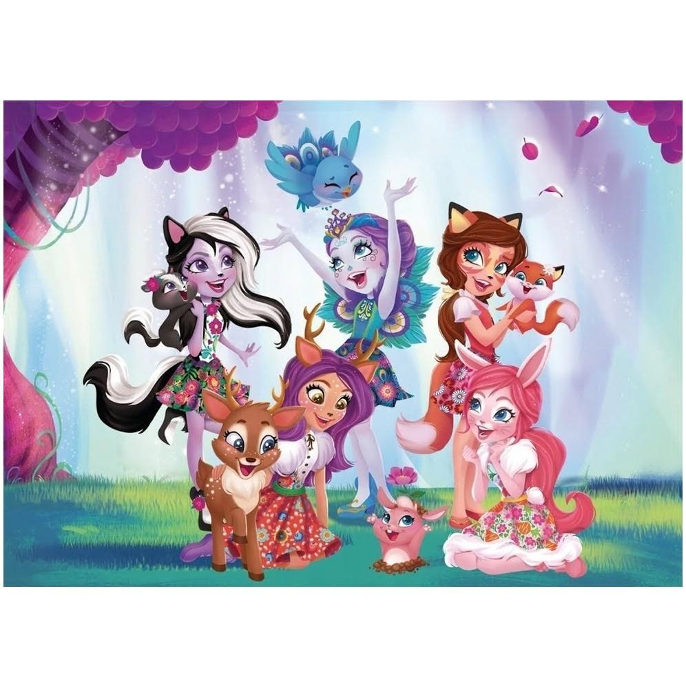 Gruby jadalny prostokątny opłatek na tort z wafla z motywem grafiki Enchantimals.