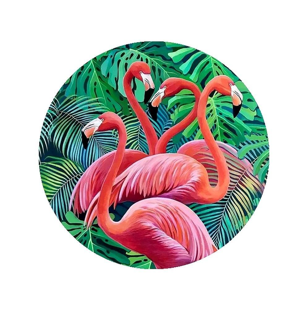 Gruby jadalny okrągły opłatek na tort z wafla z motywem Flamingów.