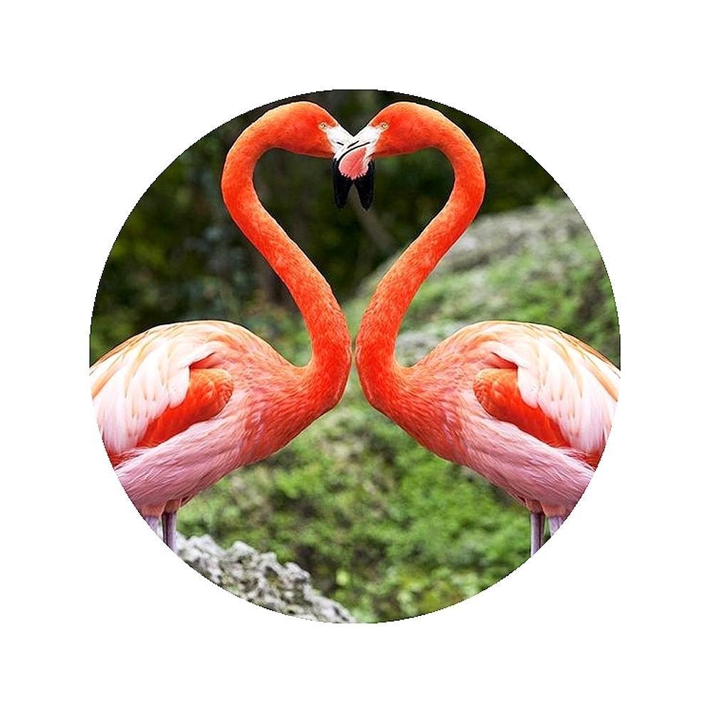 Gruby jadalny okrągły opłatek na tort z wafla z motywem Flamingów.