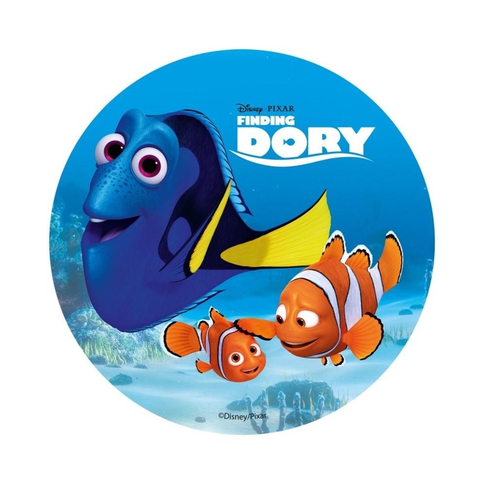 Jadalny okrągły opłatek na tort z wafla z motywem Gdzie jest Dory. Nadruk na opłatku został wykonany za pomocą jadalnych atestowanych tuszy spożywczych. Wydruk został wykonany specjalistyczną drukarką. Kolorystyka opłatka może nieznacznie się różnić od projektu graficznego (kolor opłatka jest intensywniejszy po nałożeniu na masę).
