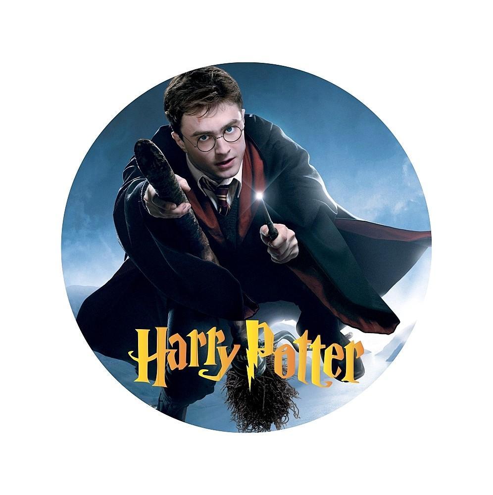 Gruby jadalny okrągły opłatek na tort z wafla z motywem Harrego Pottera.