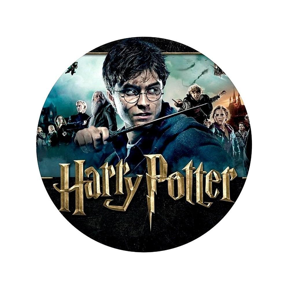 Gruby jadalny okrągły opłatek na tort z wafla z motywem Harrego Pottera.