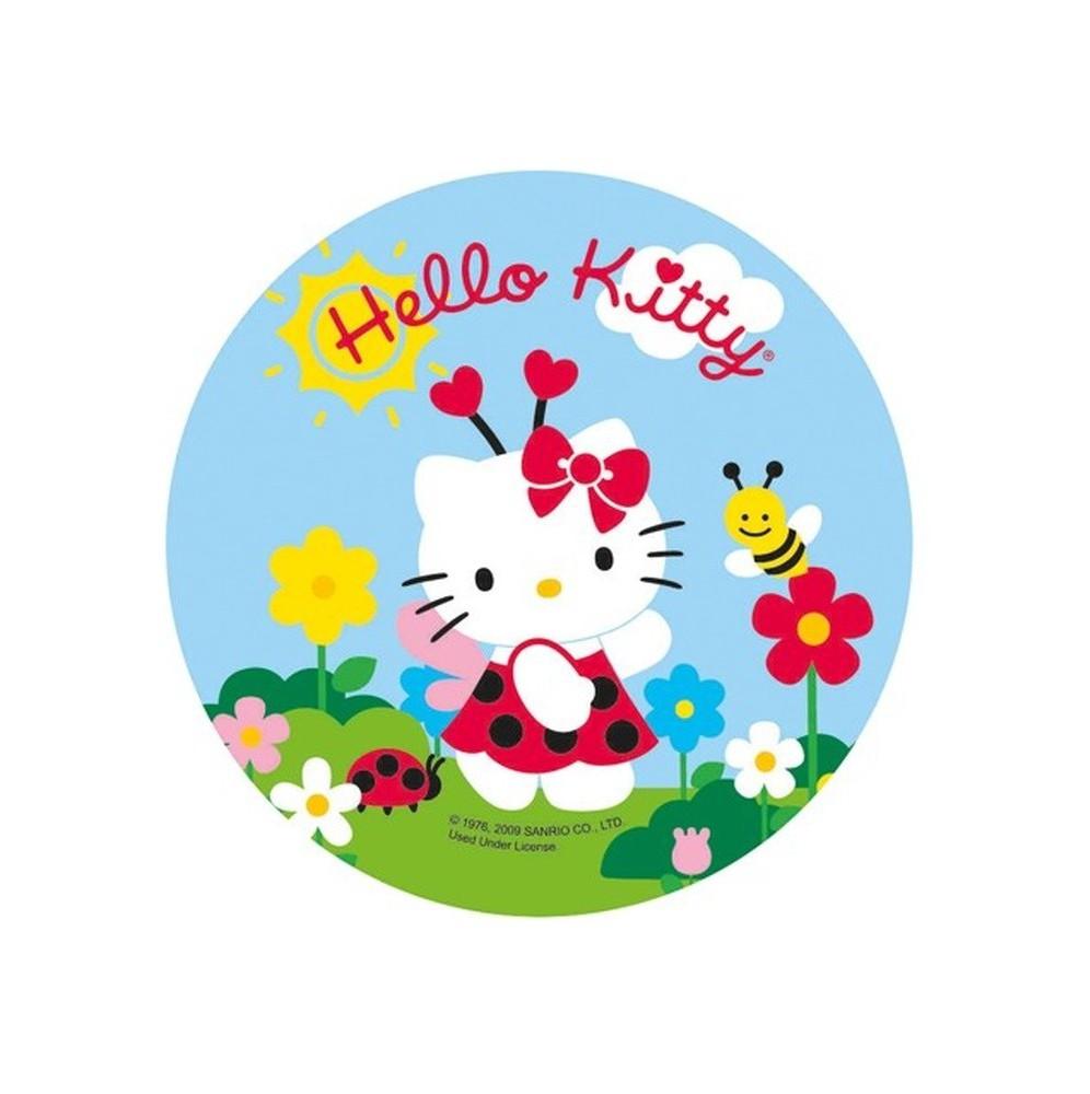 Jadalny okrągły opłatek na tort z wafla z motywem Hello Kitty. Nadruk na opłatku został wykonany za pomocą jadalnych atestowanych tuszy spożywczych. Wydruk został wykonany specjalistyczną drukarką. Kolorystyka opłatka może nieznacznie się różnić od projektu graficznego (kolor opłatka jest intensywniejszy po nałożeniu na masę).
