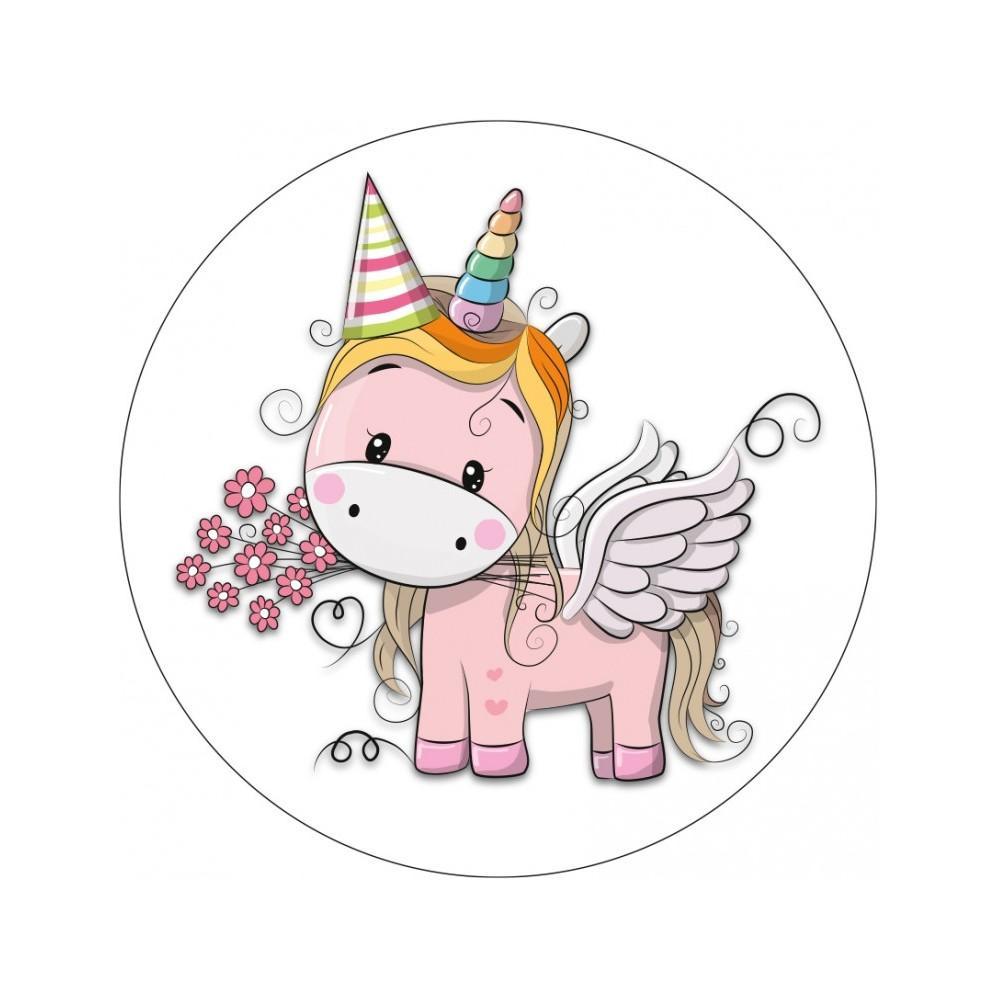 Jadalny okrągły opłatek na tort z wafla z motywem Jednorożca.