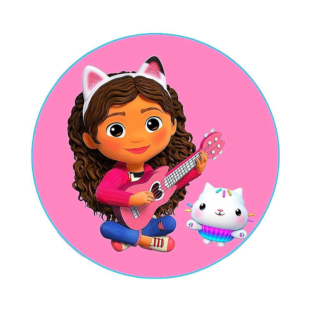 Gruby jadalny okrągły opłatek na tort z wafla z motywem Koci Domek Gabi.