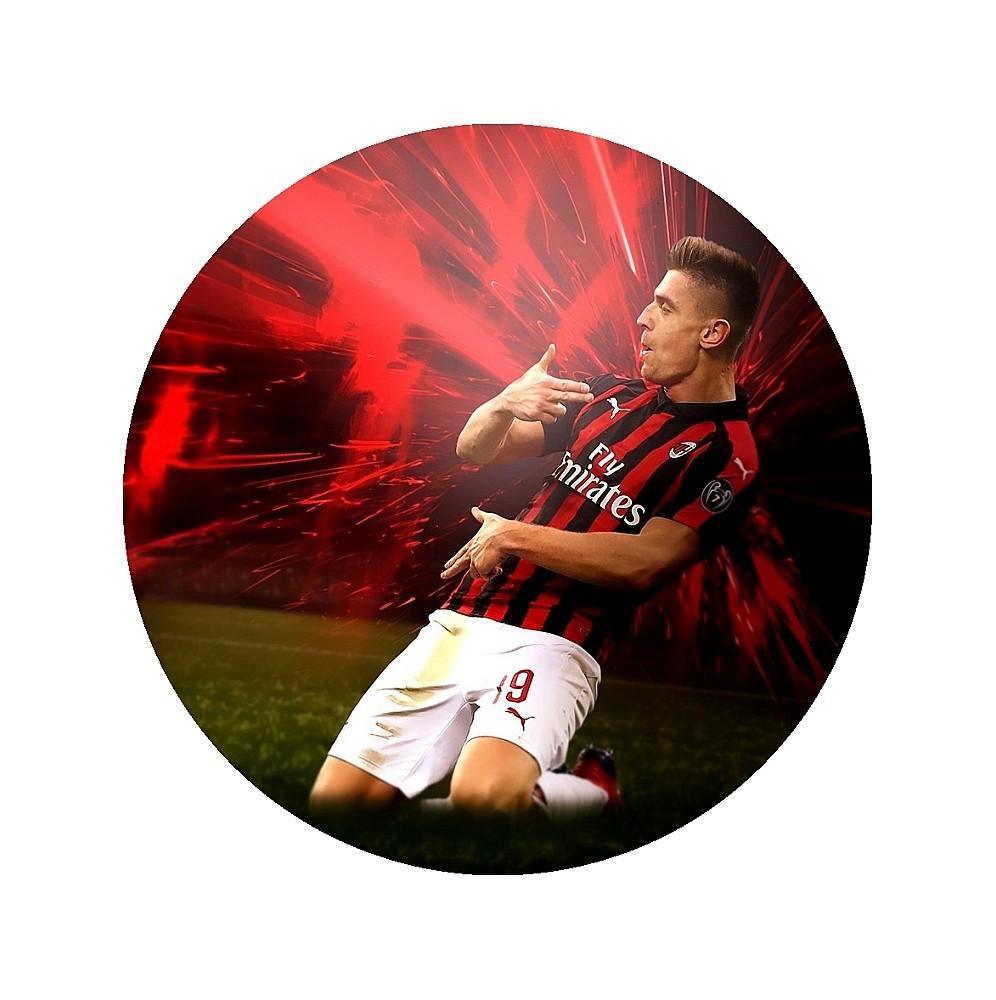 Gruby jadalny okrągły opłatek na tort z wafla z motywem Krzysztofa Piątka.