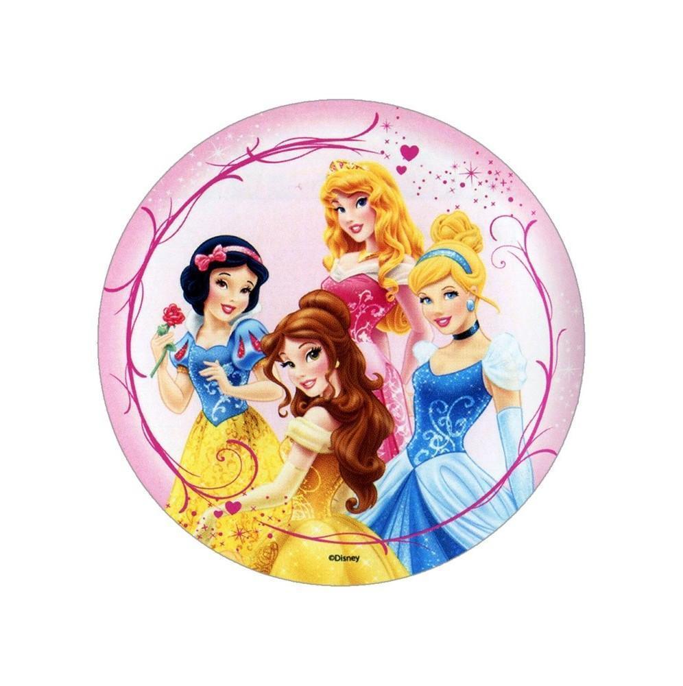Jadalny okrągły opłatek na tort z wafla z motywem popularnych Księżniczek. Nadruk na opłatku został wykonany za pomocą jadalnych atestowanych tuszy spożywczych. Wydruk został wykonany specjalistyczną drukarką. Kolorystyka opłatka może nieznacznie się różnić od projektu graficznego (kolor opłatka jest intensywniejszy po nałożeniu na masę).