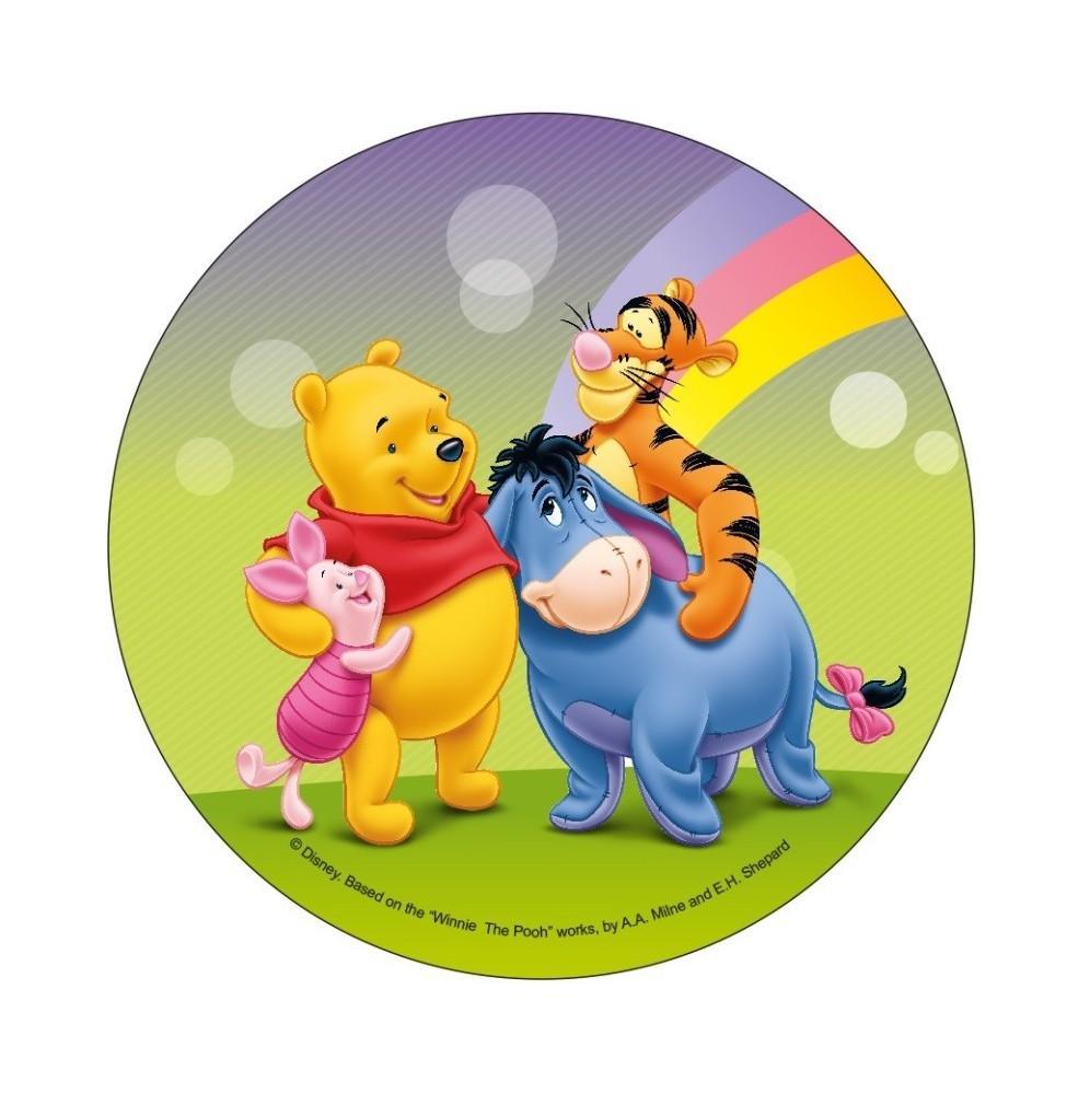 Jadalny okrągły opłatek na tort z wafla z motywem Kubusia Puchatka. Nadruk na opłatku został wykonany za pomocą jadalnych atestowanych tuszy spożywczych. Wydruk został wykonany specjalistyczną drukarką. Kolorystyka opłatka może nieznacznie się różnić od projektu graficznego (kolor opłatka jest intensywniejszy po nałożeniu na masę).