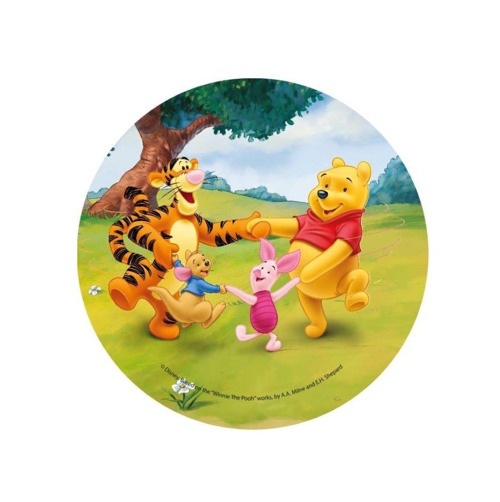 Jadalny okrągły opłatek na tort z wafla z motywem Kubusia Puchatka. Nadruk na opłatku został wykonany za pomocą jadalnych atestowanych tuszy spożywczych. Wydruk został wykonany specjalistyczną drukarką. Kolorystyka opłatka może nieznacznie się różnić od projektu graficznego (kolor opłatka jest intensywniejszy po nałożeniu na masę).