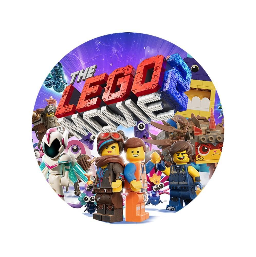 Gruby jadalny okrągły opłatek na tort z wafla z motywem Lego Movie.