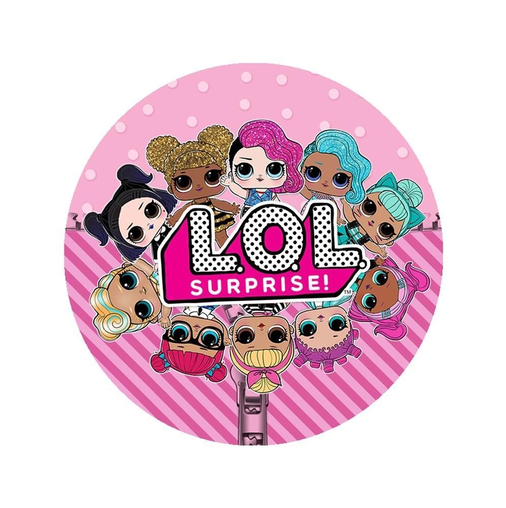 Jadalny okrągły opłatek na tort z wafla z motywem Lol Surprise. Nadruk na opłatku został wykonany za pomocą jadalnych atestowanych tuszy spożywczych. Wydruk został wykonany specjalistyczną drukarką. Kolorystyka opłatka może nieznacznie się różnić od projektu graficznego (kolor opłatka jest intensywniejszy po nałożeniu na masę).