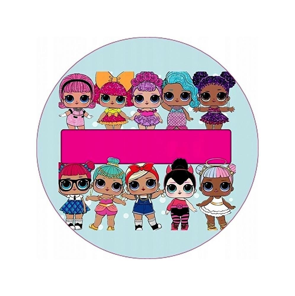 Gruby jadalny okrągły opłatek na tort z wafla z motywem Lol Surprise.