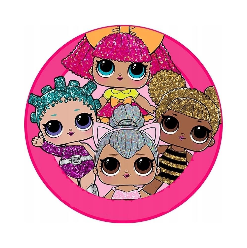 Gruby jadalny okrągły opłatek na tort z wafla z motywem Lol Surprise.