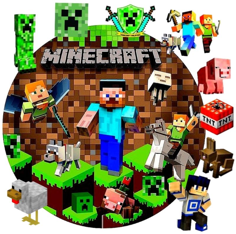 Gruby jadalny okrągły opłatek na tort z wafla z motywem Minecraft.