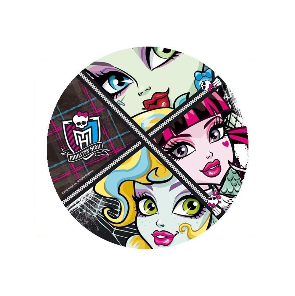 Jadalny okrągły opłatek na tort z wafla z motywem Monster High. Nadruk na opłatku został wykonany za pomocą jadalnych atestowanych tuszy spożywczych. Wydruk został wykonany specjalistyczną drukarką. Kolorystyka opłatka może nieznacznie się różnić od projektu graficznego (kolor opłatka jest intensywniejszy po nałożeniu na masę).