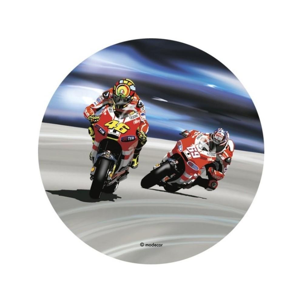 Jadalny okrągły opłatek na tort z wafla z motywem Motoru. Nadruk na opłatku został wykonany za pomocą jadalnych atestowanych tuszy spożywczych. Wydruk został wykonany specjalistyczną drukarką. Kolorystyka opłatka może nieznacznie się różnić od projektu graficznego (kolor opłatka jest intensywniejszy po nałożeniu na masę).