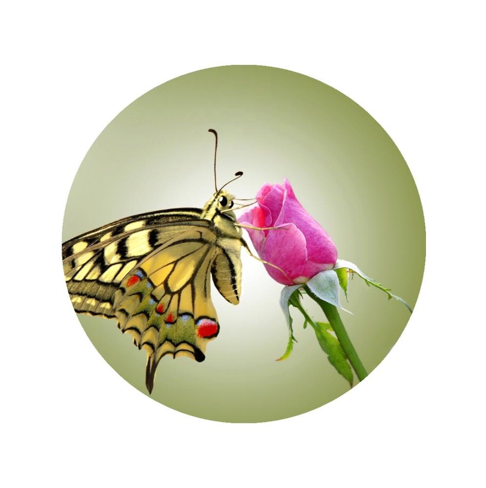 Jadalny okrągły opłatek na tort z wafla z motywem motyli. Nadruk na opłatku został wykonany za pomocą jadalnych atestowanych tuszy spożywczych. Wydruk został wykonany specjalistyczną drukarką. Kolorystyka opłatka może nieznacznie się różnić od projektu graficznego (kolor opłatka jest intensywniejszy po nałożeniu na masę).