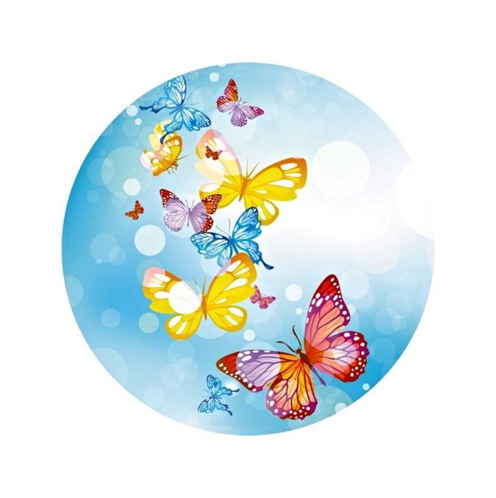 Jadalny okrągły opłatek na tort z wafla z motywem motyli. Nadruk na opłatku został wykonany za pomocą jadalnych atestowanych tuszy spożywczych. Wydruk został wykonany specjalistyczną drukarką. Kolorystyka opłatka może nieznacznie się różnić od projektu graficznego (kolor opłatka jest intensywniejszy po nałożeniu na masę).