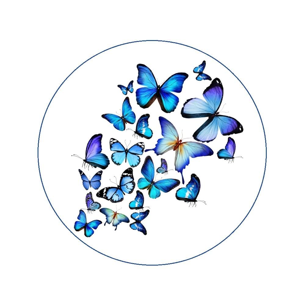 Jadalny okrągły opłatek na tort z wafla z motywem motyli. Nadruk na opłatku został wykonany za pomocą jadalnych atestowanych tuszy spożywczych. Wydruk został wykonany specjalistyczną drukarką. Kolorystyka opłatka może nieznacznie się różnić od projektu graficznego (kolor opłatka jest intensywniejszy po nałożeniu na masę).