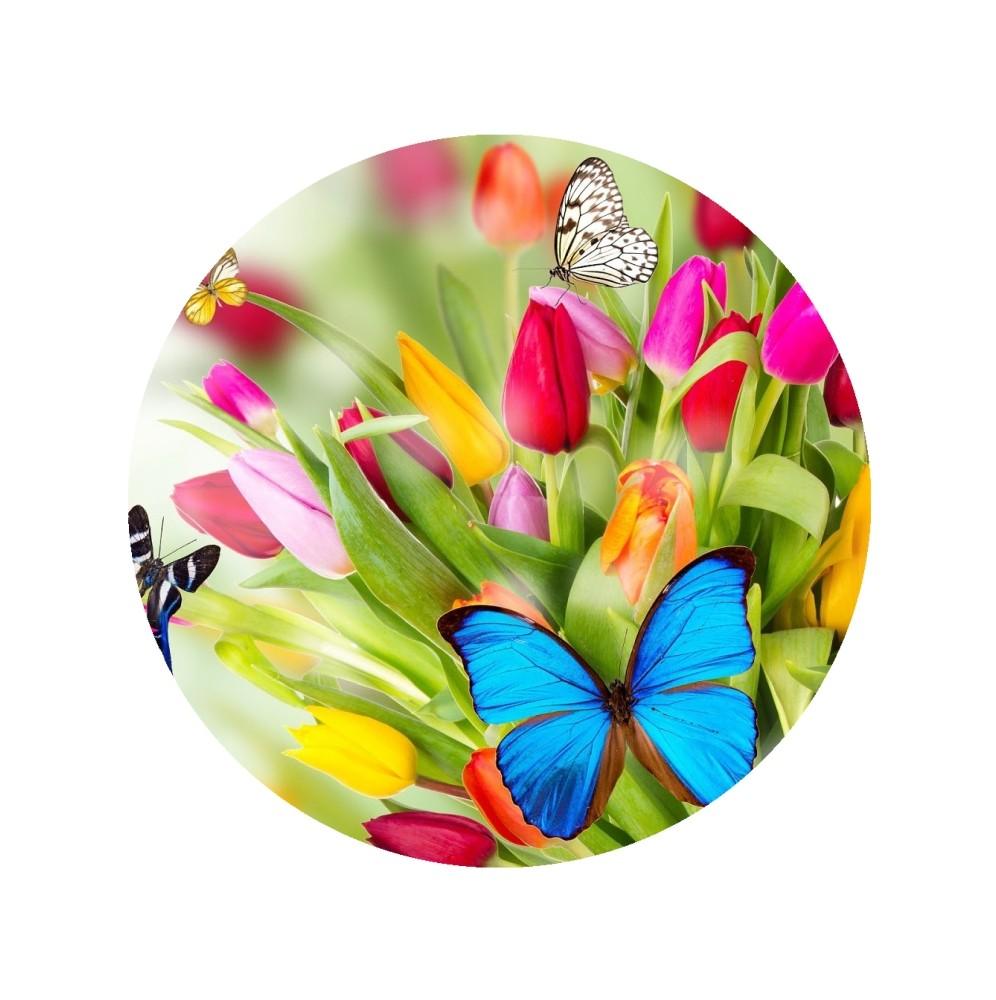 Jadalny okrągły opłatek na tort z wafla z motywem motyli. Nadruk na opłatku został wykonany za pomocą jadalnych atestowanych tuszy spożywczych. Wydruk został wykonany specjalistyczną drukarką. Kolorystyka opłatka może nieznacznie się różnić od projektu graficznego (kolor opłatka jest intensywniejszy po nałożeniu na masę).