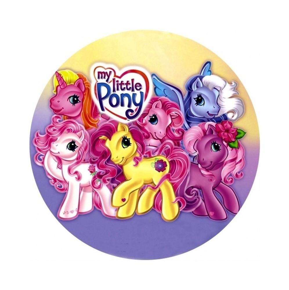 Jadalny okrągły opłatek na tort z wafla z motywem My Little Pony. Nadruk na opłatku został wykonany za pomocą jadalnych atestowanych tuszy spożywczych. Wydruk został wykonany specjalistyczną drukarką. Kolorystyka opłatka może nieznacznie się różnić od projektu graficznego (kolor opłatka jest intensywniejszy po nałożeniu na masę).