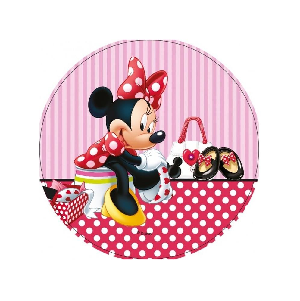 Jadalny okrągły opłatek na tort z wafla z motywem Myszki Mini. Nadruk na opłatku został wykonany za pomocą jadalnych atestowanych tuszy spożywczych. Wydruk został wykonany specjalistyczną drukarką. Kolorystyka opłatka może nieznacznie się różnić od projektu graficznego (kolor opłatka jest intensywniejszy po nałożeniu na masę).