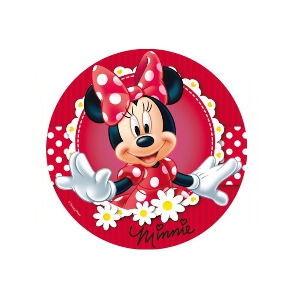 Jadalny okrągły opłatek na tort z wafla z motywem Myszki Minnie. Nadruk na opłatku został wykonany za pomocą jadalnych atestowanych tuszy spożywczych. Wydruk został wykonany specjalistyczną drukarką. Kolorystyka opłatka może nieznacznie się różnić od projektu graficznego (kolor opłatka jest intensywniejszy po nałożeniu na masę).