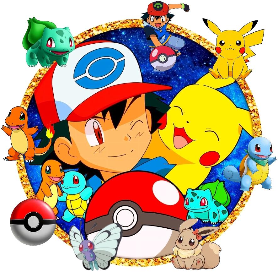 Gruby jadalny okrągły opłatek na tort z wafla z motywem Pokemon.