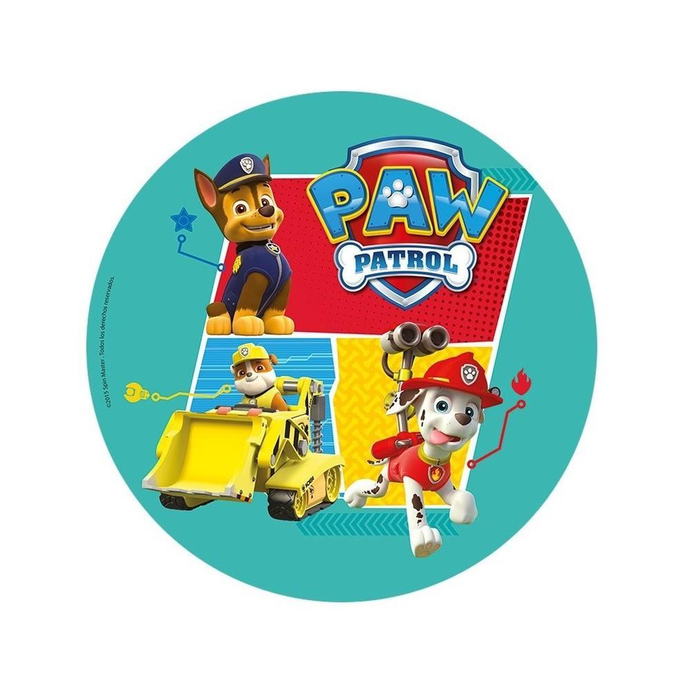 Jadalny okrągły opłatek na tort z wafla z motywem Psi Patrol. Nadruk na opłatku został wykonany za pomocą jadalnych atestowanych tuszy spożywczych. Wydruk został wykonany specjalistyczną drukarką. Kolorystyka opłatka może nieznacznie się różnić od projektu graficznego (kolor opłatka jest intensywniejszy po nałożeniu na masę).