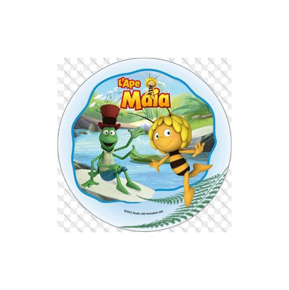 Jadalny okrągły opłatek na tort z wafla z motywem Pszczółki Mai. Nadruk na opłatku został wykonany za pomocą jadalnych atestowanych tuszy spożywczych. Wydruk został wykonany specjalistyczną drukarką. Kolorystyka opłatka może nieznacznie się różnić od projektu graficznego (kolor opłatka jest intensywniejszy po nałożeniu na masę).