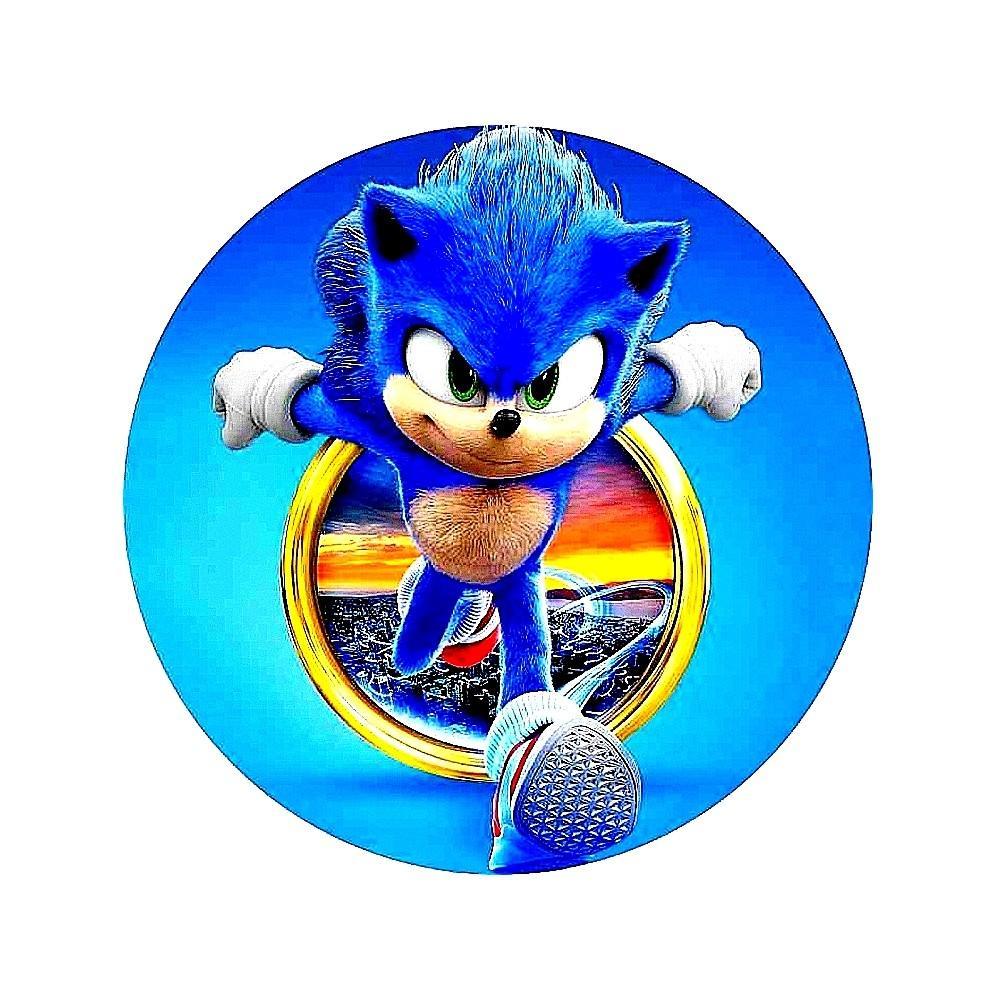 Gruby jadalny okrągły opłatek na tort z wafla z motywem Sonic.
