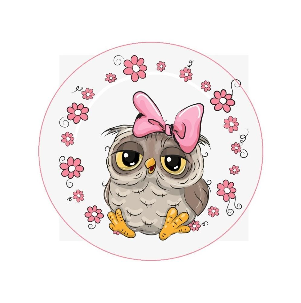 Jadalny okrągły opłatek na tort z wafla z motywem Sówki. Nadruk na opłatku został wykonany za pomocą jadalnych atestowanych tuszy spożywczych. Wydruk został wykonany specjalistyczną drukarką. Kolorystyka opłatka może nieznacznie się różnić od projektu graficznego (kolor opłatka jest intensywniejszy po nałożeniu na masę).