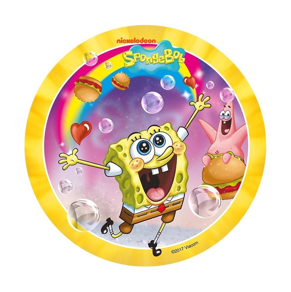 Jadalny okrągły opłatek na tort z wafla z motywem popularnej bajki SpongeBob. Nadruk na opłatku został wykonany za pomocą jadalnych atestowanych tuszy spożywczych. Wydruk został wykonany specjalistyczną drukarką. Kolorystyka opłatka może nieznacznie się różnić od projektu graficznego (kolor opłatka jest intensywniejszy po nałożeniu na masę).