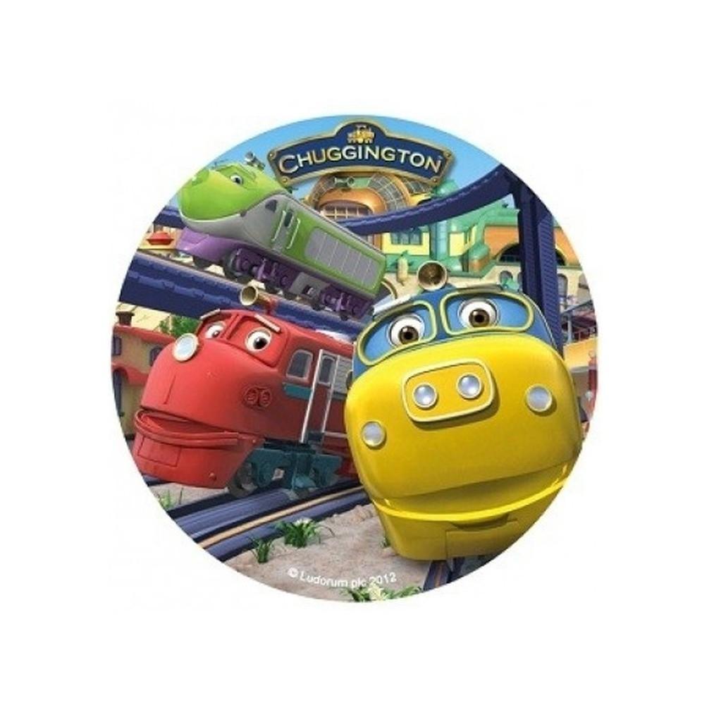 Jadalny okrągły opłatek na tort z wafla z motywem bajki Stacyjkowo. Nadruk na opłatku został wykonany za pomocą jadalnych atestowanych tuszy spożywczych. Wydruk został wykonany specjalistyczną drukarką. Kolorystyka opłatka może nieznacznie się różnić od projektu graficznego (kolor opłatka jest intensywniejszy po nałożeniu na masę).