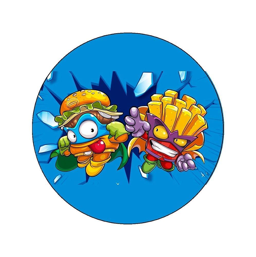 Gruby jadalny okrągły opłatek na tort z wafla z motywem Super Zings.