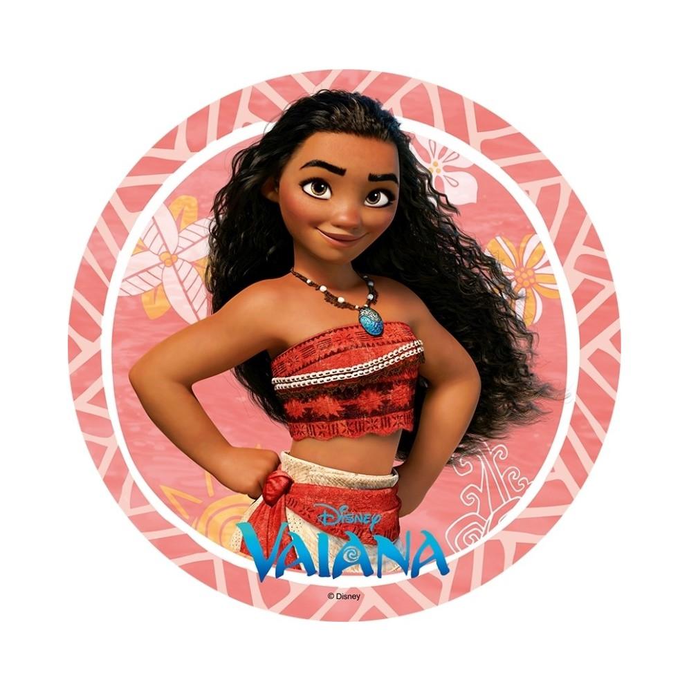 Jadalny okrągły opłatek na tort z wafla z motywem Vaiany:Skarb Oceanu. Nadruk na opłatku został wykonany za pomocą jadalnych atestowanych tuszy spożywczych. Wydruk został wykonany specjalistyczną drukarką. Kolorystyka opłatka może nieznacznie się różnić od projektu graficznego (kolor opłatka jest intensywniejszy po nałożeniu na masę).