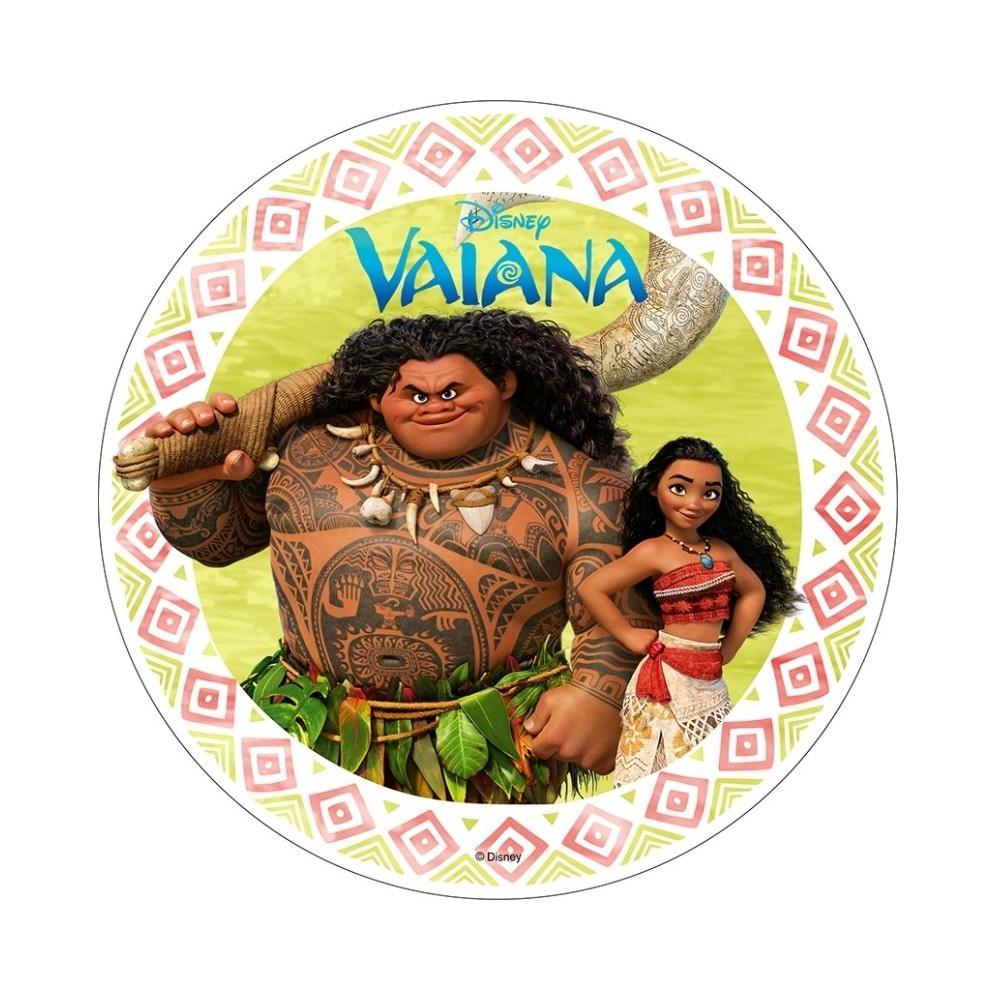 Jadalny okrągły opłatek na tort z wafla z motywem Vaiany:Skarb Oceanu. Nadruk na opłatku został wykonany za pomocą jadalnych atestowanych tuszy spożywczych. Wydruk został wykonany specjalistyczną drukarką. Kolorystyka opłatka może nieznacznie się różnić od projektu graficznego (kolor opłatka jest intensywniejszy po nałożeniu na masę).