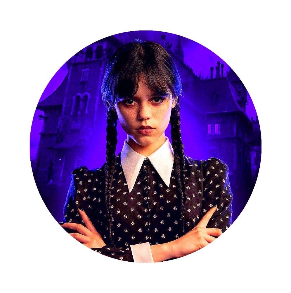 Gruby jadalny okrągły opłatek na tort z wafla z motywem WEDNESDAY.